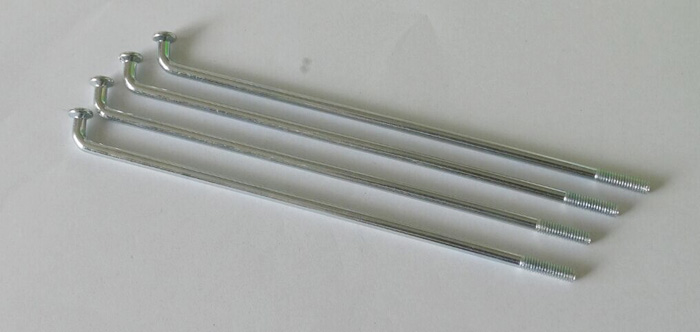 摩托車輻條,尺寸:120-230(mm),型號:C90。主要規格有 8G、9G、10G、11G、12G、13G、14G、15G長度為45mm-308mm,條母有普通型、銑槽、加長型銑槽及加長型銅條母。主要用于連接摩托車外輪和輪轂。摩托車輻條一端有個90度彎角穿過車抽盤的小孔,另一端有輻條帽穿過輪轂的輻條孔。通過調節輻條的松緊來調整摩托車車輪轉動是不是在同一個平面上。這樣,摩托車行駛會更穩。