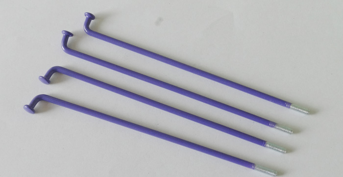 摩托車輻條,尺寸:120-230(mm),型號:C90。主要規格有 8G、9G、10G、11G、12G、13G、14G、15G長度為45mm-308mm,條母有普通型、銑槽、加長型銑槽及加長型銅條母。主要用于連接摩托車外輪和輪轂。摩托車輻條一端有個90度彎角穿過車抽盤的小孔,另一端有輻條帽穿過輪轂的輻條孔。通過調節輻條的松緊來調整摩托車車輪轉動是不是在同一個平面上。這樣,摩托車行駛會更穩。